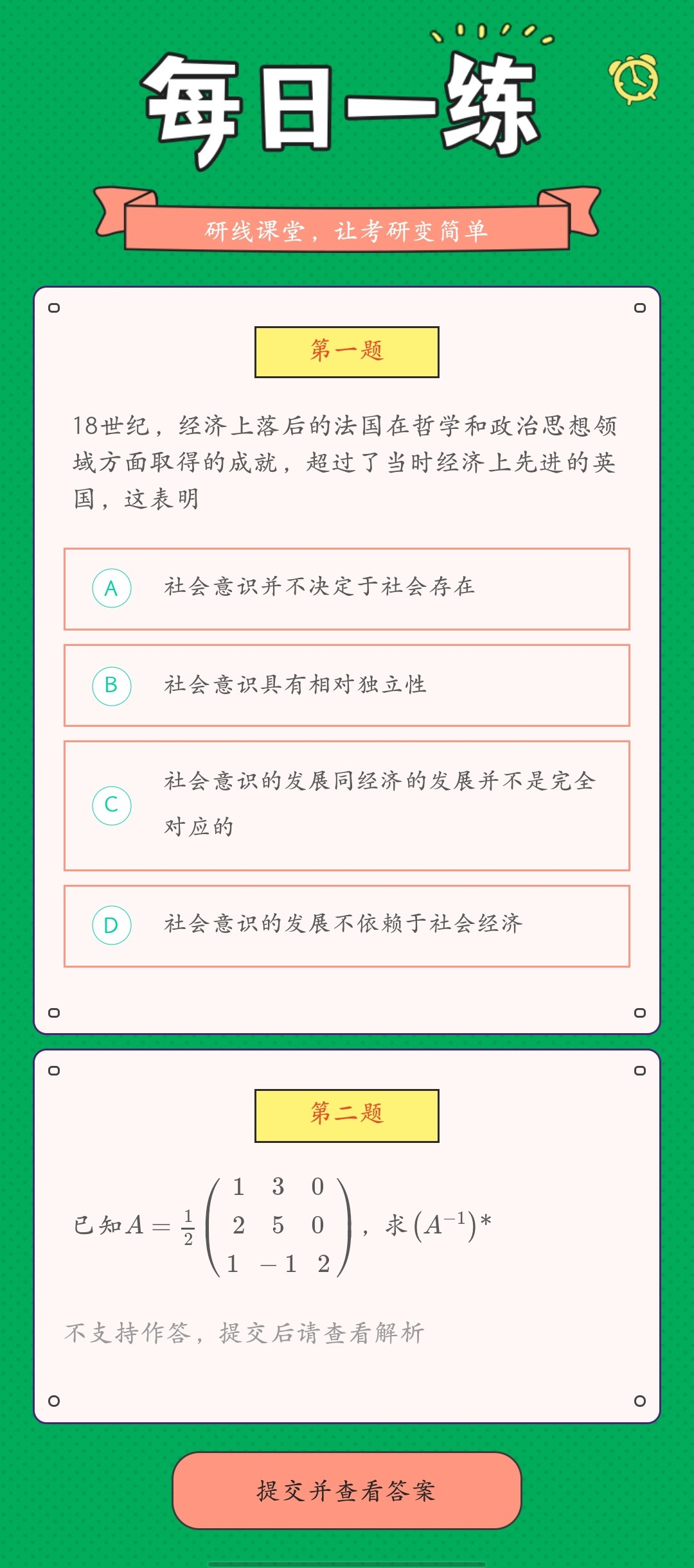 以上就是今日每日一練的全部內(nèi)容,跟著每日一練,考研輕松復(fù)習(xí)!更多考試練習(xí),點擊考研每日一練!
