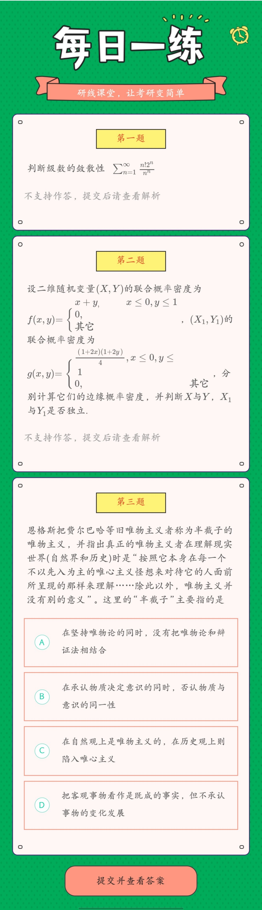 點擊進入:研線課堂萬題庫,每日習題不重復。全面題型任你刷,真題解析隨便看。