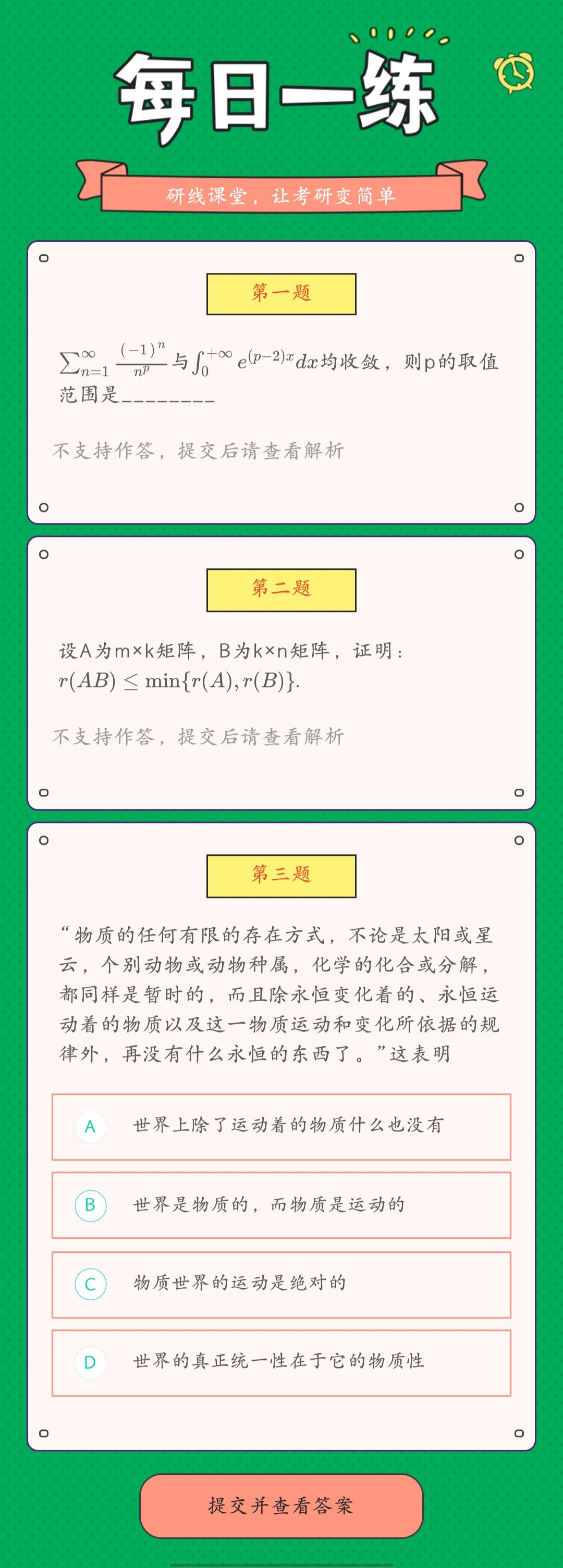 以上就是今日每日一練的全部?jī)?nèi)容,跟著每日一練,考研輕松復(fù)習(xí)!更多考試練習(xí),點(diǎn)擊考研每日一練!
