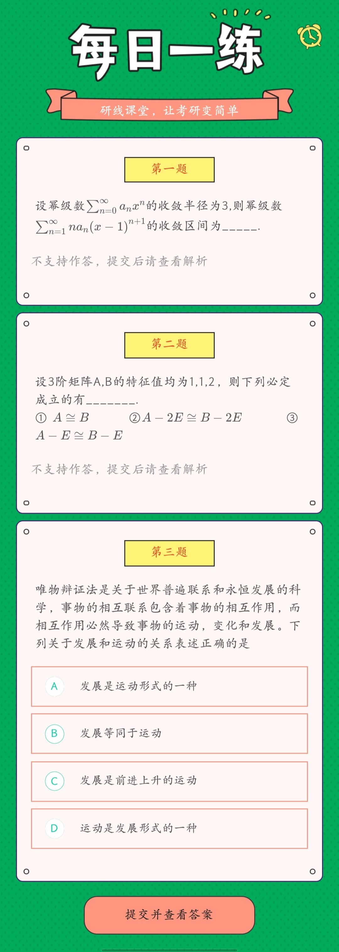 點擊進入:研線課堂萬題庫,每日習題不重復。全面題型任你刷,真題解析隨便看。