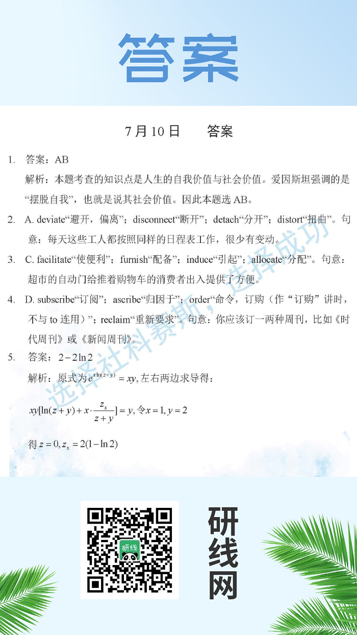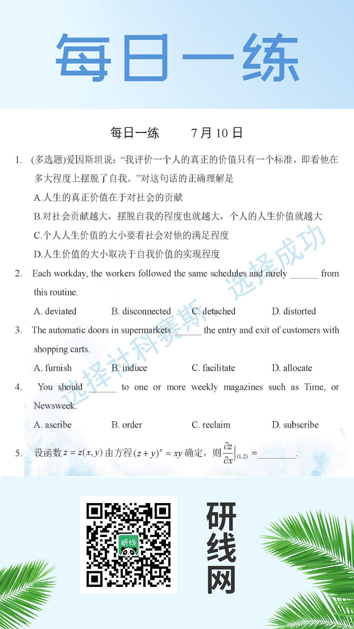 7月10日:2020考研學碩每日一練以及答案