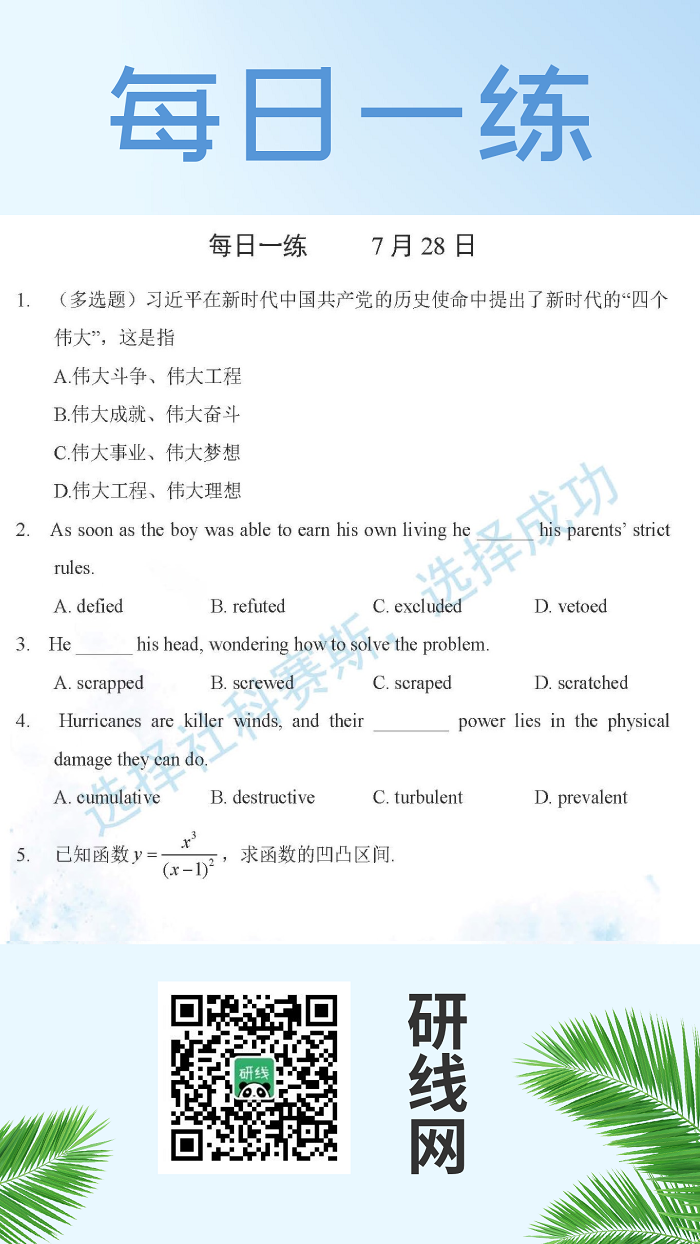 以上就是今日每日一練的全部內容,跟著每日一練,考研輕松復習!更多考試練習,點擊考研每日一練!