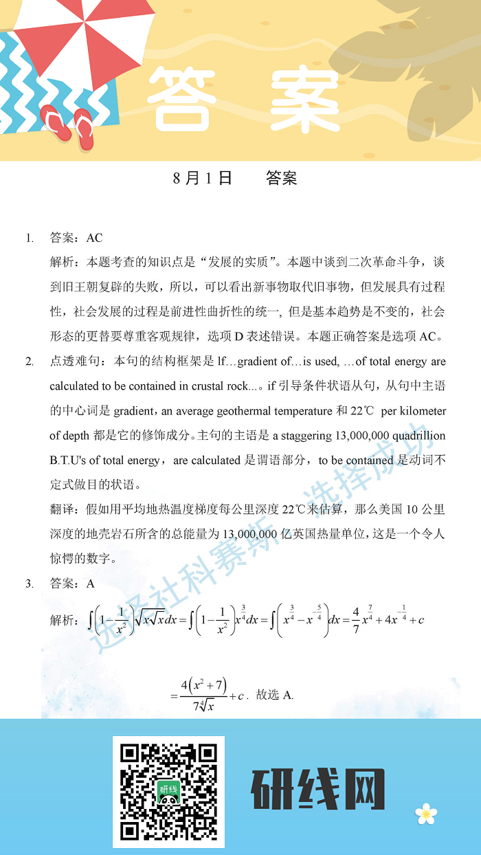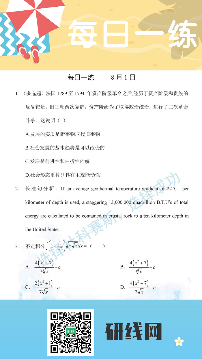 8月1日:2020考研學碩每日一練以及答案