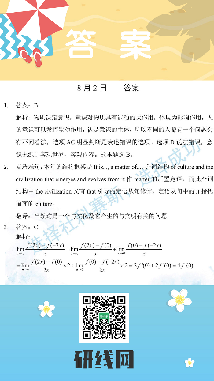 8月2日:2020考研學(xué)碩每日一練以及答案