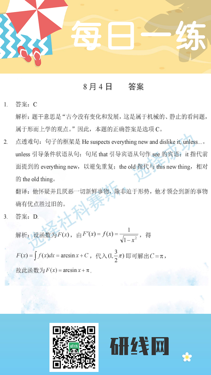 為了更好的復習和鞏固已經學過的知識,研線網小編為大家整理出幾道題,作為每日的練習,希望能夠幫助到同學們哦!