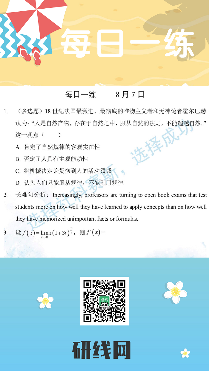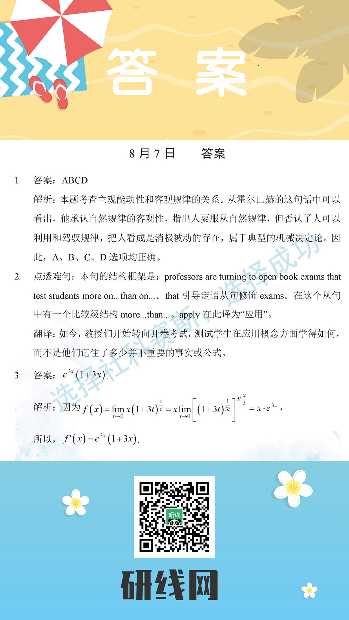 8月7日:2020考研學(xué)碩每日一練以及答案
