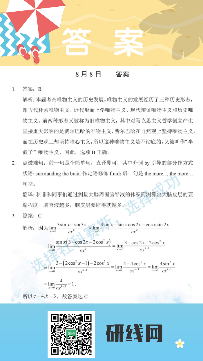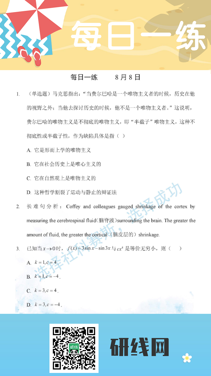 8月9日:2020考研學碩每日一練以及答案