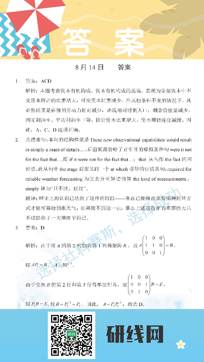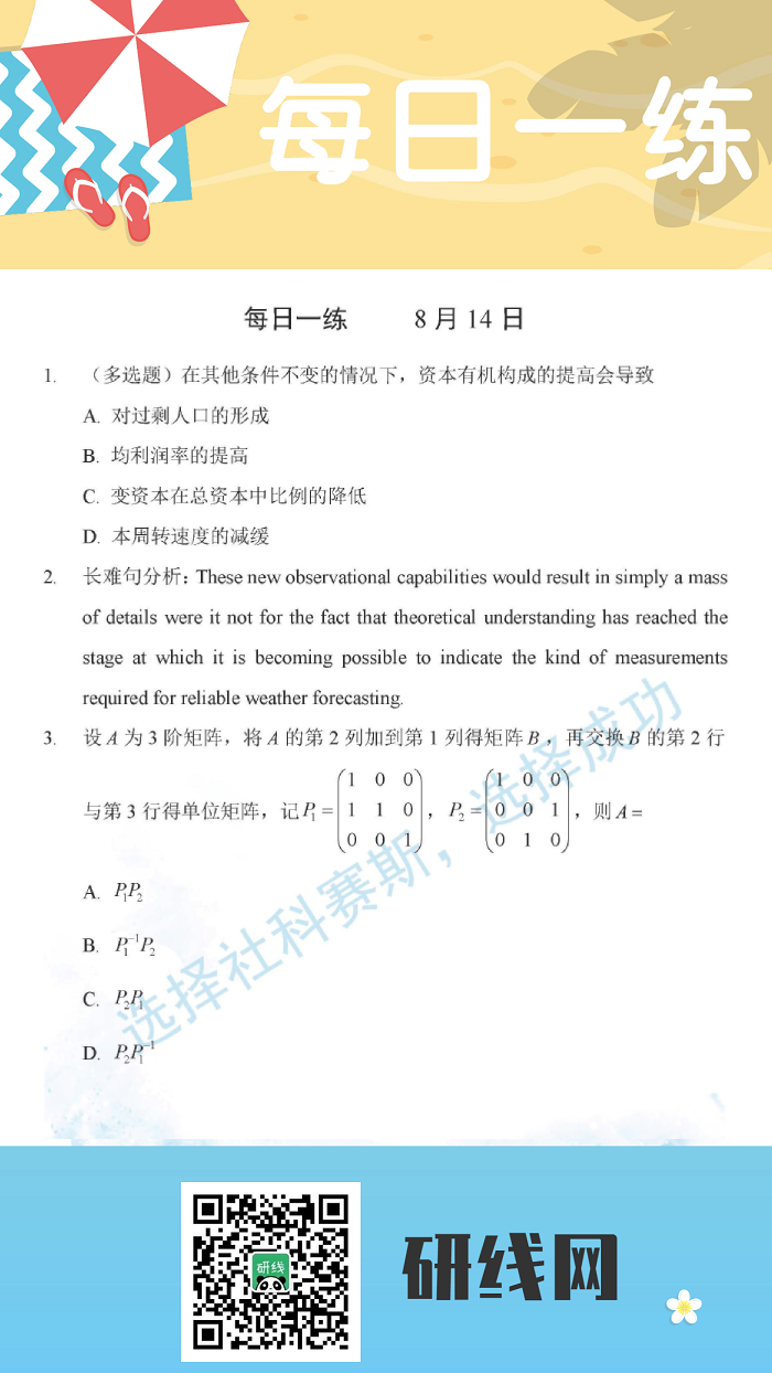以上就是今日每日一練的全部內容,跟著每日一練,考研輕松復習!更多考試練習,點擊考研每日一練