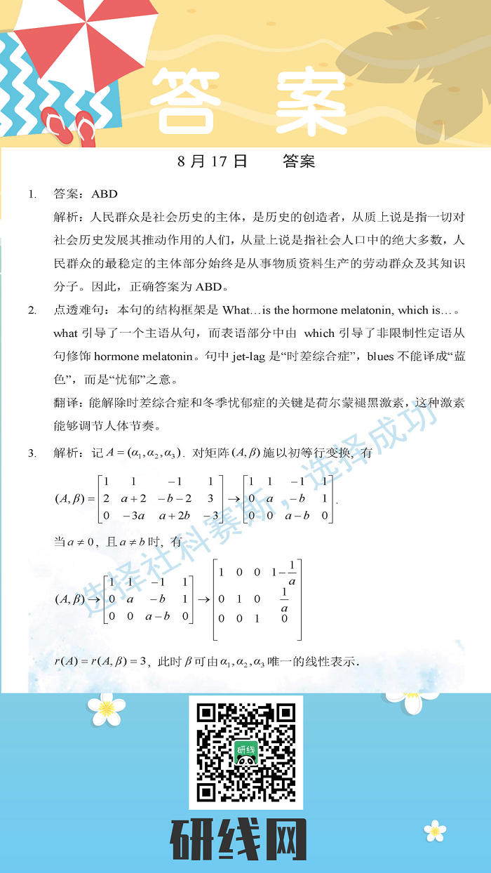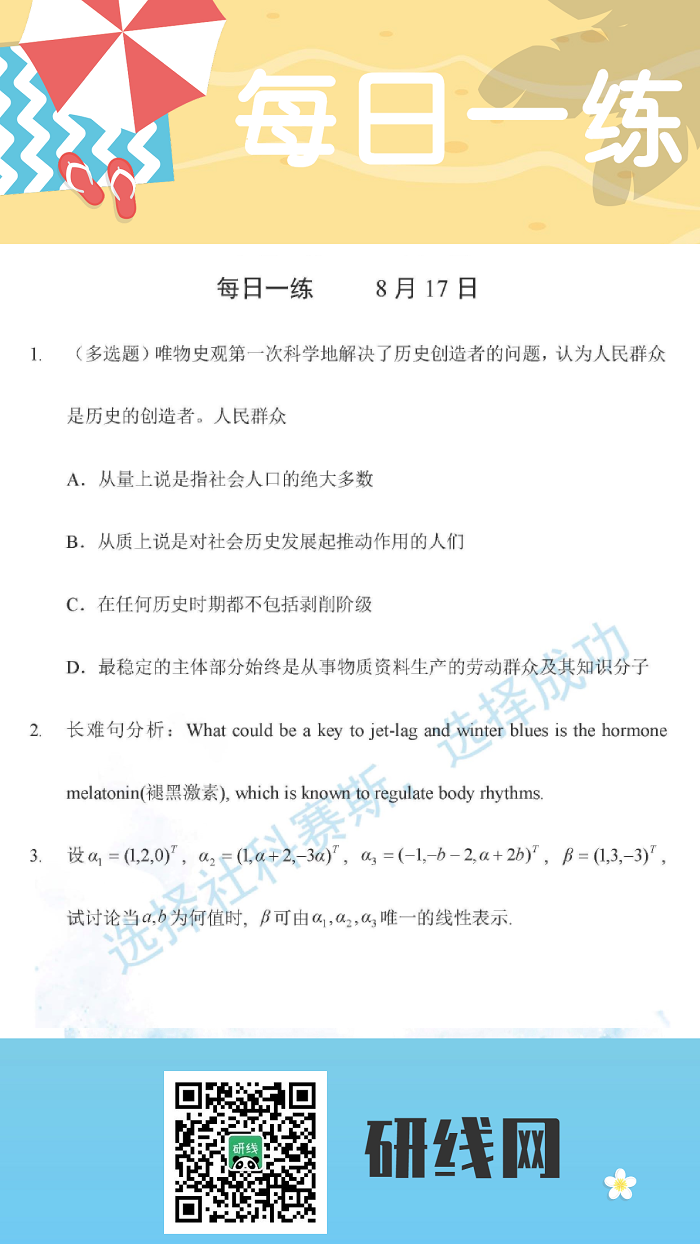 8月17日:2020考研學碩每日一練以及答案