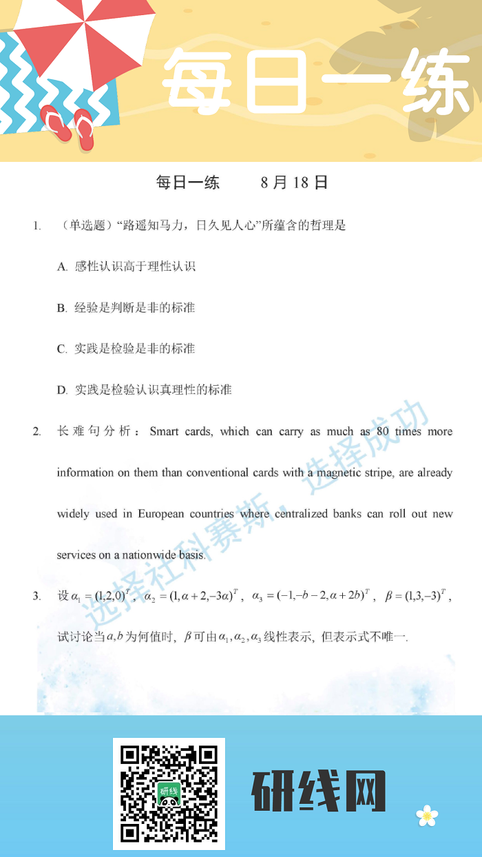 為了更好的復(fù)習(xí)和鞏固已經(jīng)學(xué)過(guò)的知識(shí),研線網(wǎng)小編為大家整理出幾道題,作為每日的練習(xí),希望能夠幫助到同學(xué)們哦!