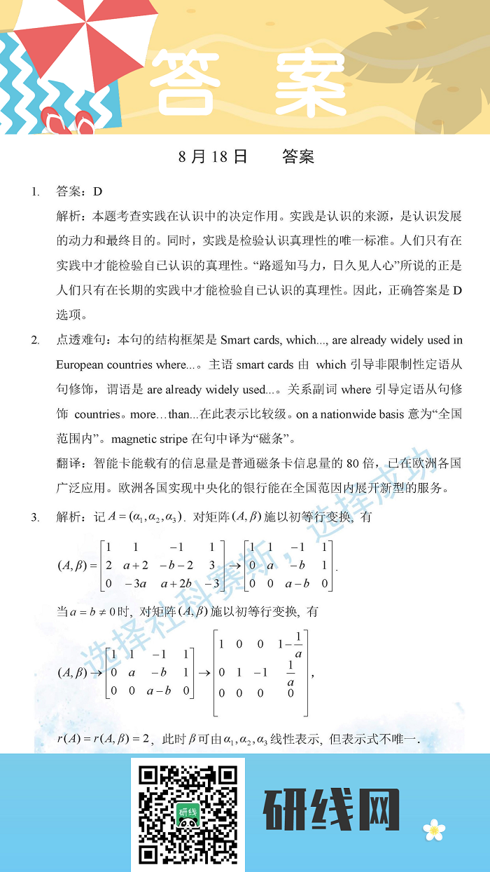 8月18日:2020考研學(xué)碩每日一練以及答案