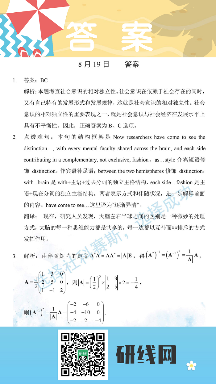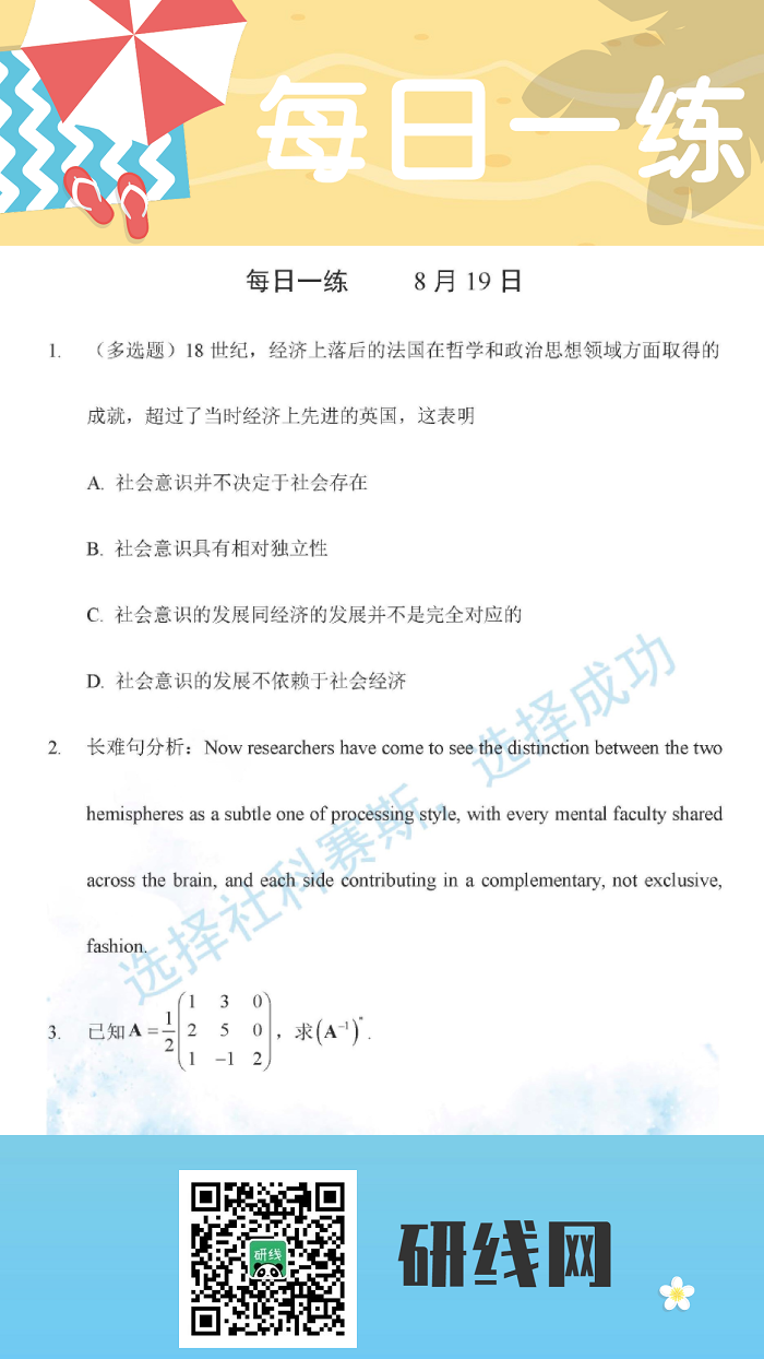 以上就是今日每日一練的全部內容,跟著每日一練,考研輕松復習!更多考試練習,點擊考研每日一練