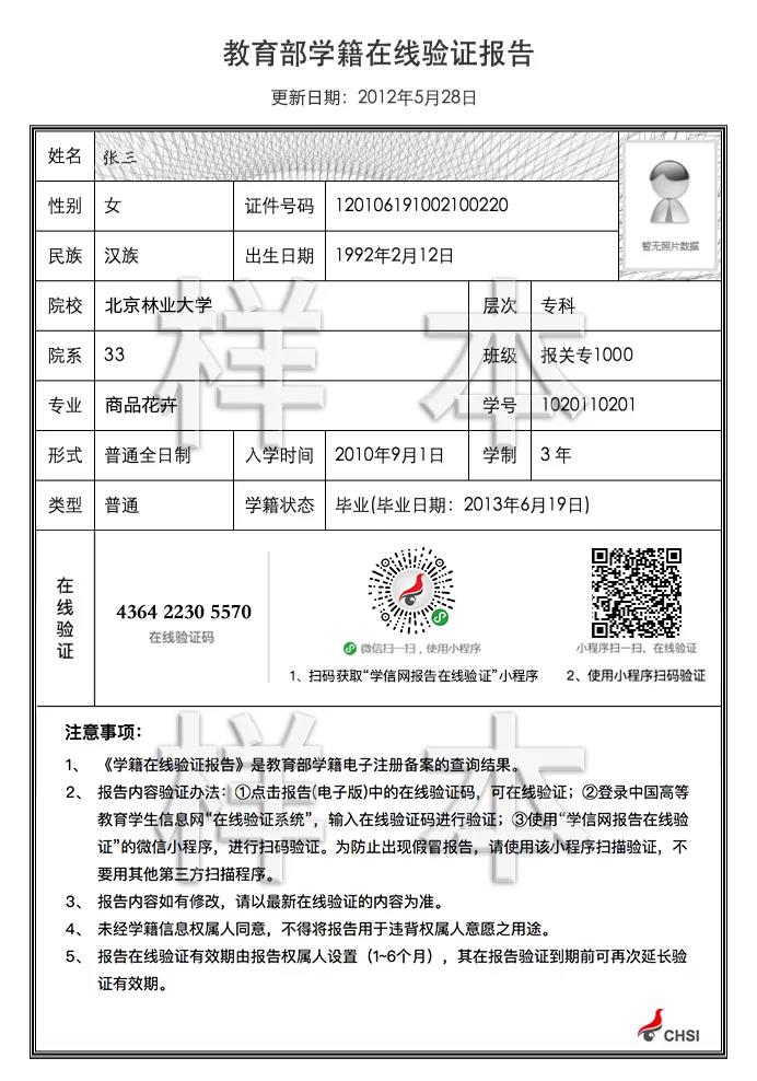 ● e.在境外獲得學(xué)位證書(shū)的考生須提供教育部留學(xué)服務(wù)中心出具的認(rèn)證報(bào)告,認(rèn)證報(bào)告上的12位在線(xiàn)驗(yàn)證碼或7位認(rèn)證編號(hào)必須清晰完整;