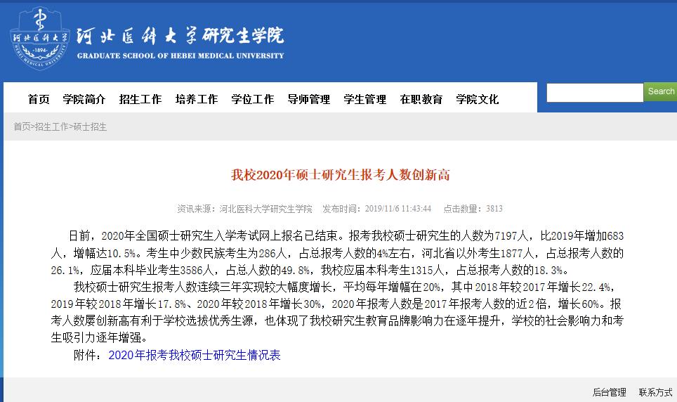 以上就是“2020考研報考人數 | 河北醫科大學2020考研報考人數為7197人創新高,增幅達10.5%!”的全部內容!2020考研總人數是多少還不確定,但有一點可以肯定,考研人數必定將逐年遞增。希望大家抓住機會,早日考研成功!