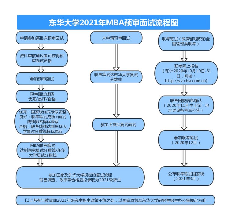 一、東華大學(xué)2021年MBA預(yù)審面試政策