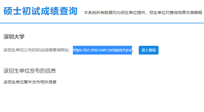 深圳大學考研初試成績查詢入口:https://yz.chsi.com.cn/apply/cjcx/