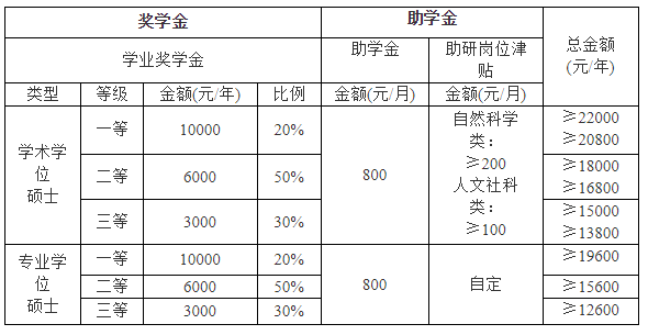 我校為全日制非定向碩士研究生提供獎助學金(標準如下表),全日制定向研究生和非全日制研究生不提供獎助學金。推免生入學第一學年全部享受一等學業(yè)獎。