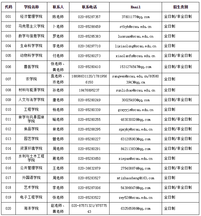 地址:廣東省廣州市天河區(qū)五山路483號華南農業(yè)大學研究生院招生辦公室(行政樓316室)