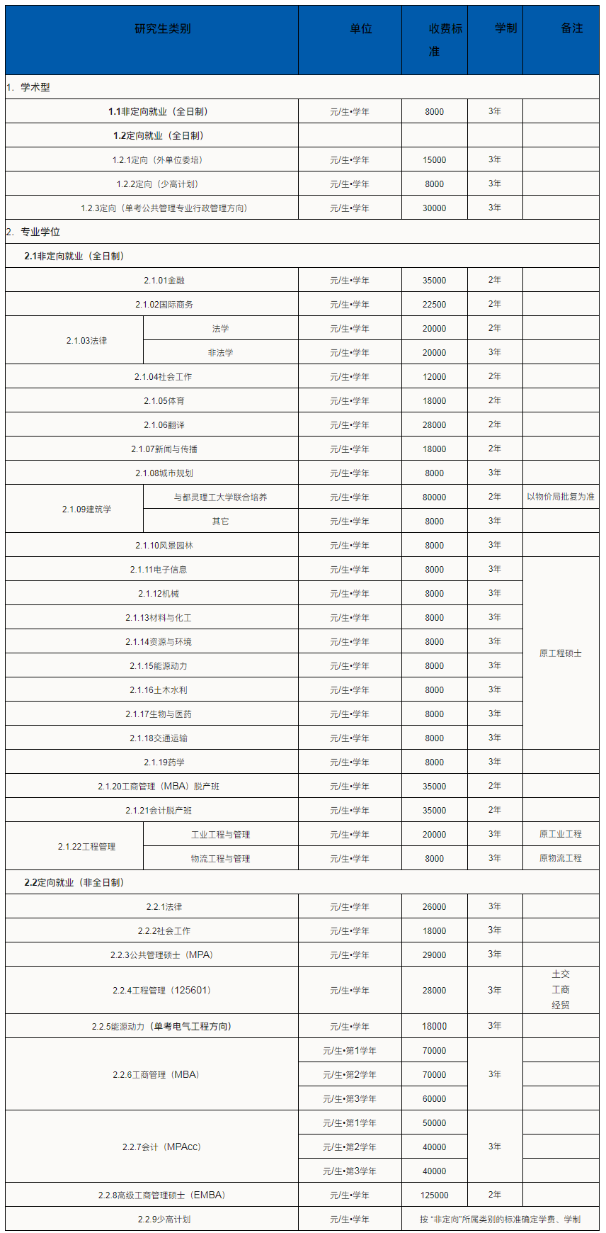 根據(jù)教育部、財(cái)政部等有關(guān)文件要求,所有納入全國(guó)研究生招生計(jì)劃的研究生入學(xué)均須繳納學(xué)費(fèi)。非定向就業(yè)全日制學(xué)術(shù)型碩士研究生的學(xué)費(fèi)標(biāo)準(zhǔn)為每生每年8000元,定向就業(yè)學(xué)術(shù)型碩士研究生、全日制專業(yè)學(xué)位碩士研究生按相關(guān)規(guī)定和標(biāo)準(zhǔn)繳納學(xué)費(fèi)。各類別學(xué)費(fèi)標(biāo)準(zhǔn)請(qǐng)見附件1。
