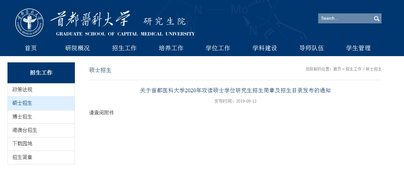 首都醫科大學2020年攻讀碩士學位研究生招生簡章