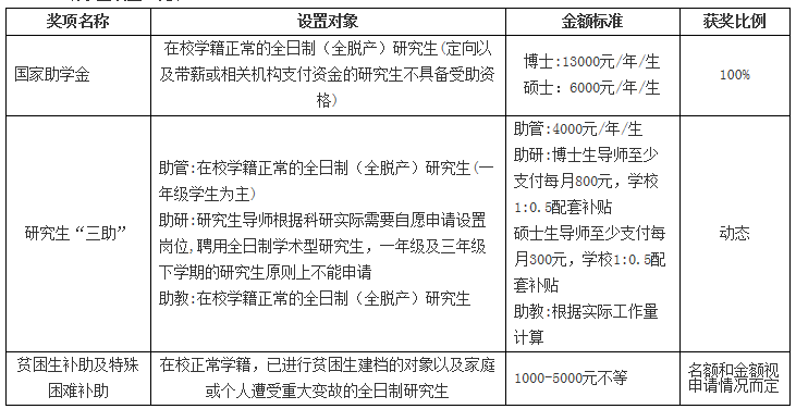 注:獎學金實際發放以學校有關獎助文件為準,非全日制研究生不享受各類研究生獎助政策。