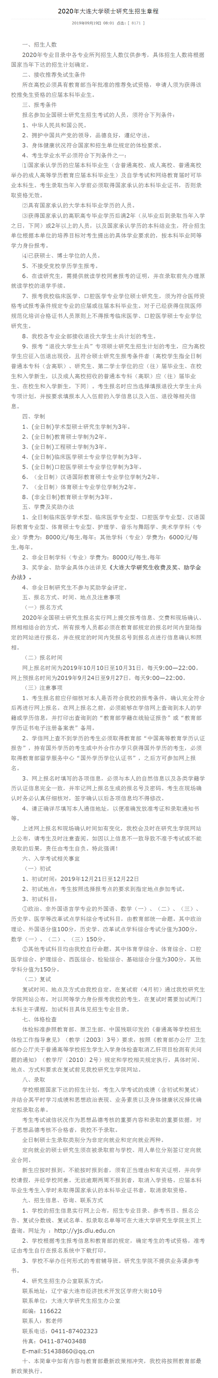 以上就是“大連大學(xué)2020年碩士研究生招生章程”的全部內(nèi)容!更多考研信息持續(xù)更新,多多關(guān)注!祝考研順利,馬到成功!