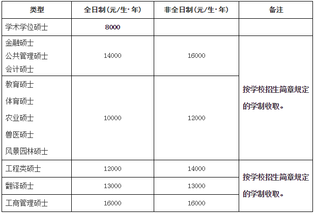 我校各類型研究生均需繳納學費,學費收取標準如下,如有變動,按省物價局最新文件執(zhí)行: