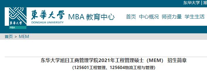 以上就是“2021考研招生簡章:東華大學旭日工商管理學院2021年工程管理碩士(MEM) 招生簡章”的全部內容!更多信息盡在招生簡章欄目,祝考研成功!