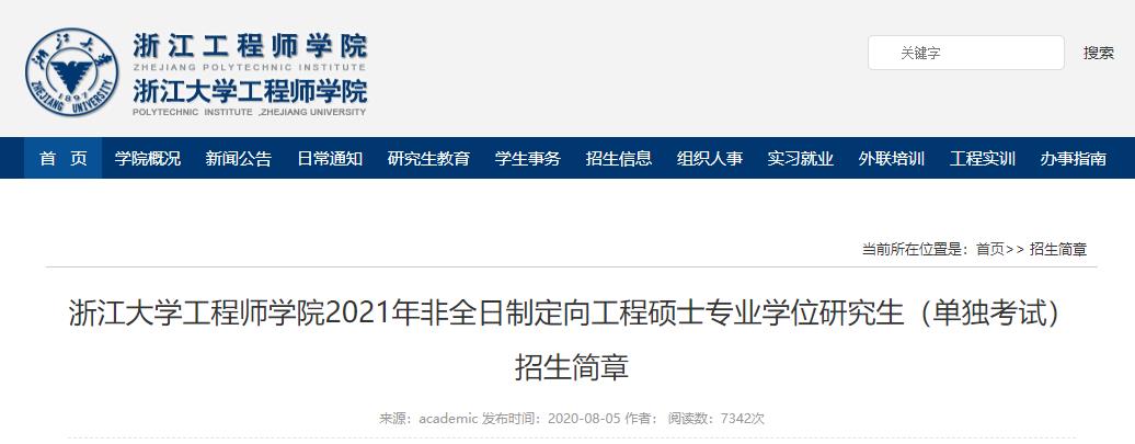 各位同學備考的同時,也要時刻關注院校官網的信息,小編將及時更新各院校2021年招生簡章,為考生提供第一手的招生信息,敬請關注。今天,小編整理了“2021考研招生簡章:浙江大學工程師學院2021年非全日制定向工程碩士專業學位研究生(單獨考試)招生簡章”的相關內容!下面我們一起來看一看!