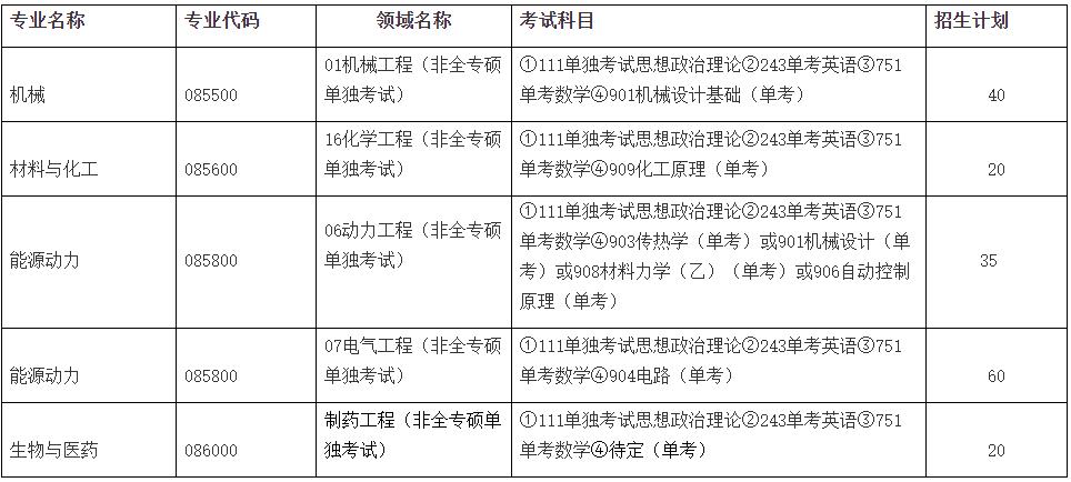 2、工程碩士單獨考試所有科目由學校自主命題。具體考試科目詳見表一,最終以研究生院2021年招生簡章和招生目錄為準。