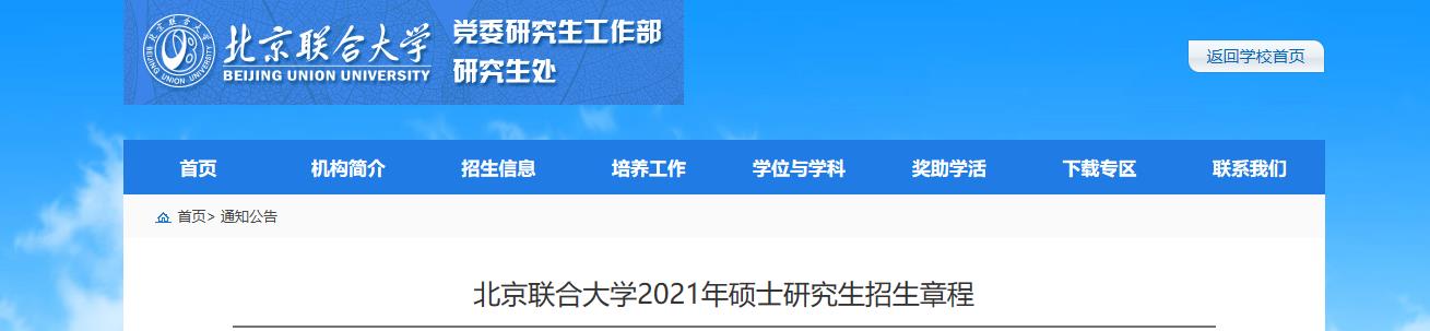 以上就是研線網小編整理“2021考研招生簡章:北京聯合大學2021年碩士研究生招生章程”的全部內容,更多內容盡在招生簡章欄目,請持續關注!