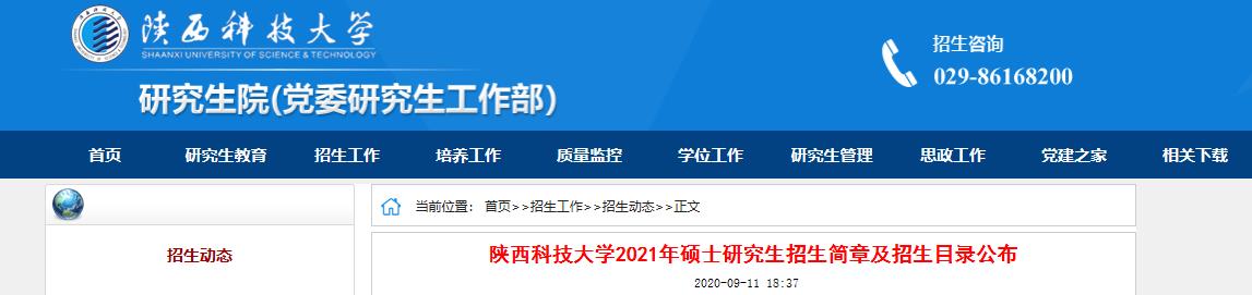 各位同學(xué)備考的同時(shí),也要時(shí)刻關(guān)注院校官網(wǎng)的信息,小編將及時(shí)更新各院校2021年招生簡(jiǎn)章,為考生提供第一手的招生信息,敬請(qǐng)關(guān)注。今天,小編整理了“2021考研招生簡(jiǎn)章:陜西科技大學(xué)2021年碩士研究生招生簡(jiǎn)章 ”的相關(guān)內(nèi)容!下面我們一起來(lái)看一看!