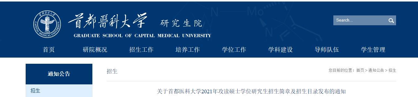 原文標題:關于首都醫(yī)科大學2021年攻讀碩士學位研究生招生簡章及招生目錄發(fā)布的通知