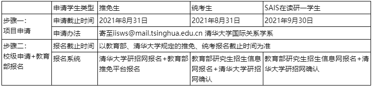 學生需向清華大學與約翰?霍普金斯大學SAIS分別提交申請材料,具體要求如下。