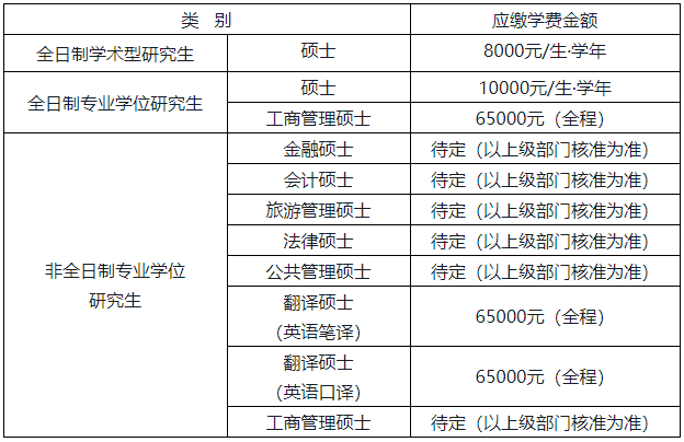 注:以上待定的學費將于2021年10月15日左右在學校研究生招生信息網對外公布。)