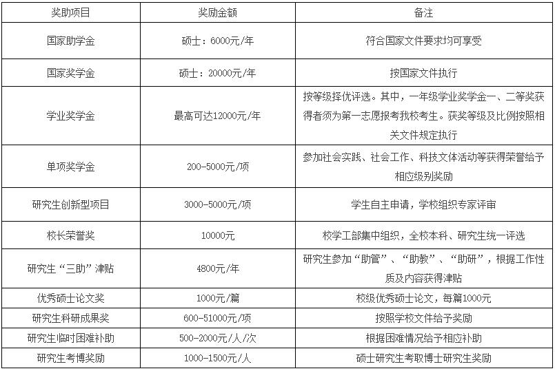 注:表中各類獎助學金僅面向全日制脫產(chǎn)方式學習的非定向碩士研究生評選,評選細則以學校相關(guān)文件及通知為準。