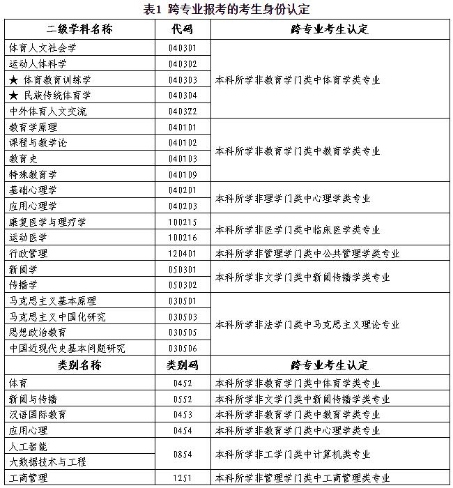 (四)是否屬于跨專業(yè)報考由我校認(rèn)定,跨專業(yè)報考的考生身份認(rèn)定見表1。