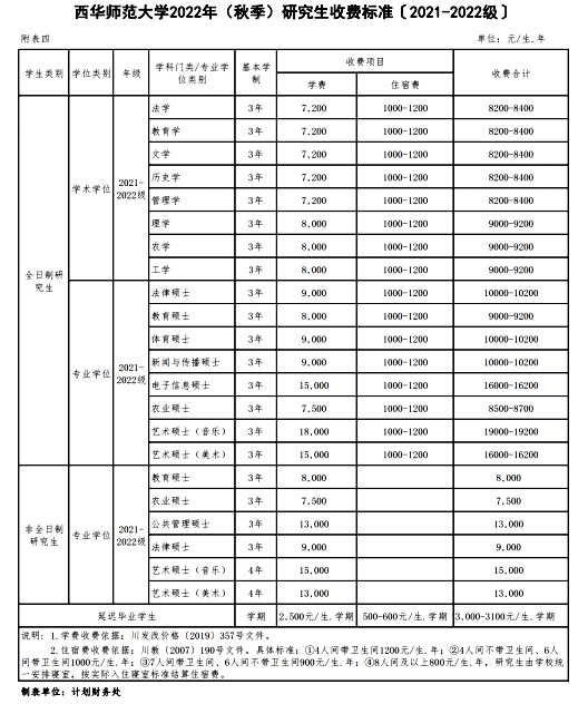 2.學校按國家相關規定,通過設立獎學金、助學金、助學貸款、三助崗位、綠色通道等制度,建立多元獎助體系,支持碩士研究生完成學業,提高碩士研究生待遇水平。學校研究生獎助政策詳見《西華師范大學研究生獎助學金評審辦法》(西華師大?!?022〕114號)。