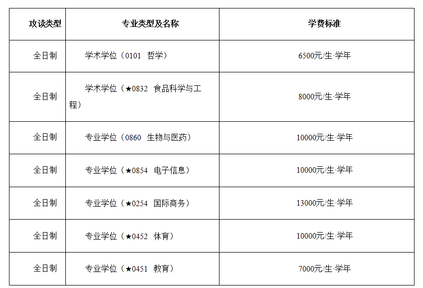 (二)學費:根據國家有關規定,我校2024年碩士研究生學費標準如下:
