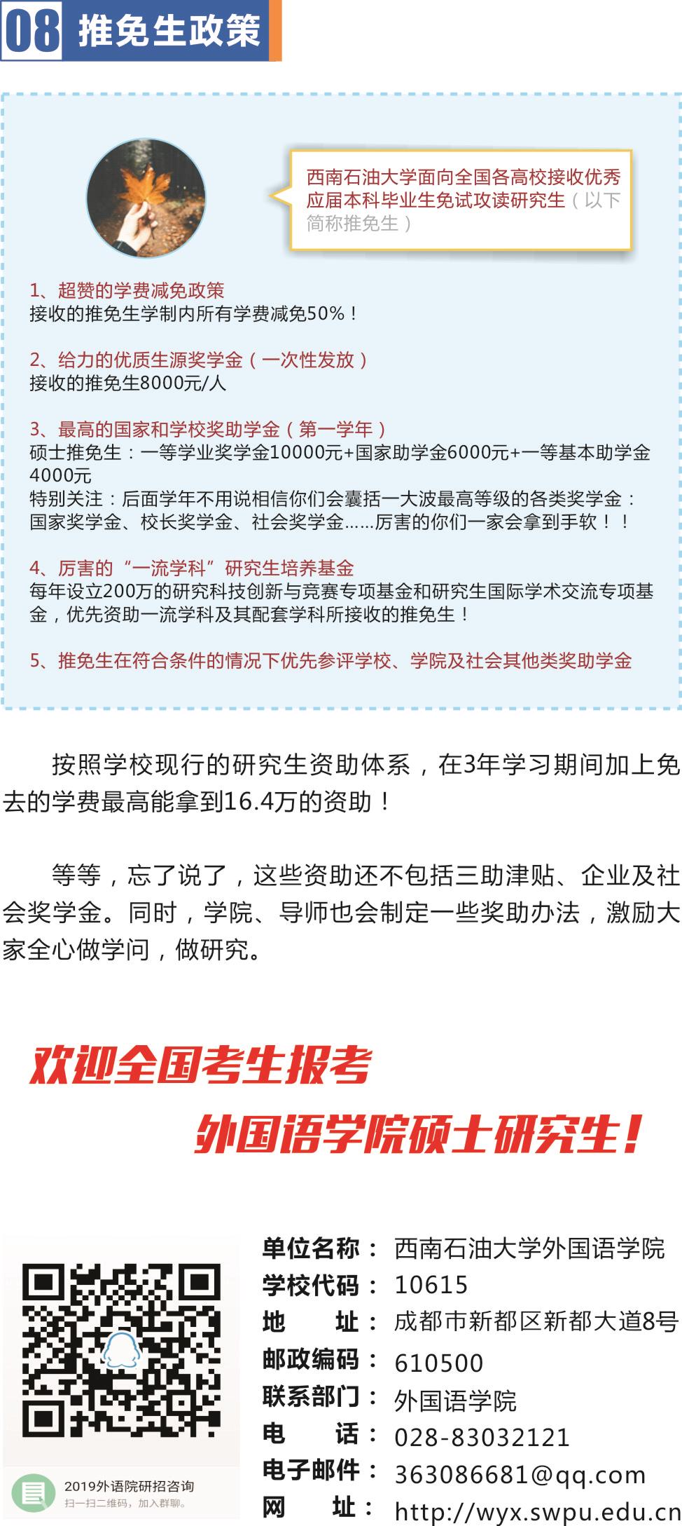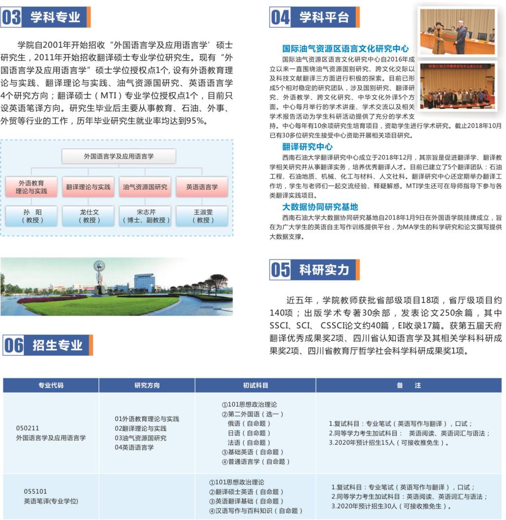 以上就是“西南石油大學(xué)外國語學(xué)院2020年碩士研究生招生簡章”的全部內(nèi)容!更多2020年招生簡章信息,盡在“招生簡章”欄目!