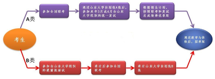 (1)B類考生:提前面試+全國聯(lián)考+山東大學自劃線B線