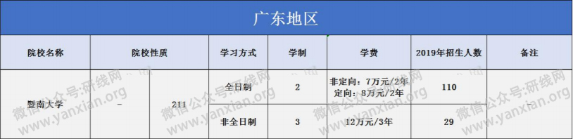 研線網《藍皮書》整理暨南大學2019年學制學費情況