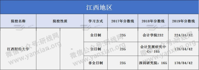 雖然2020年的復試分數線和報錄比還未定,但是研線網整理了2019年江西財經大學會計專碩的復試分數線和招生情況,供大家參考。