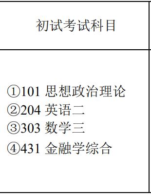 初試科目:政治思想理論+英語二+數(shù)學(xué)三+金融學(xué)綜合