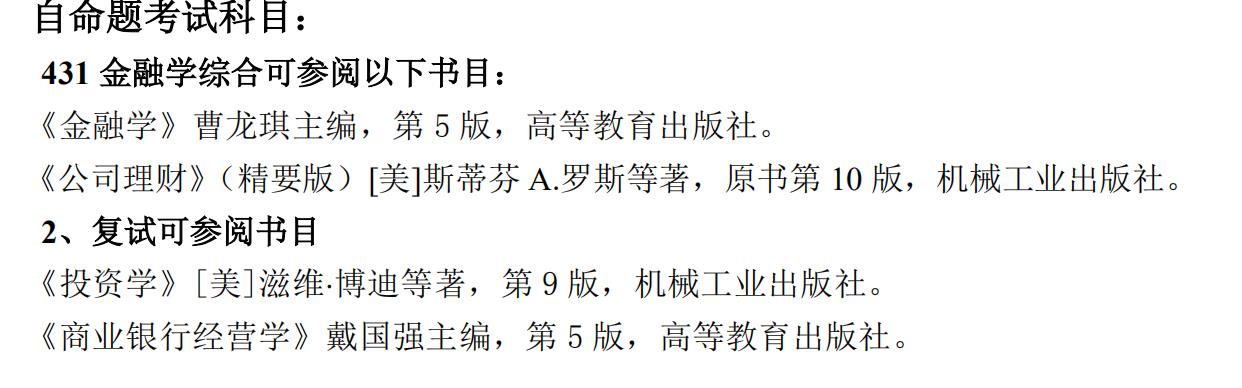 復(fù)試科目:投資學(xué)+商業(yè)銀行經(jīng)營學(xué)
