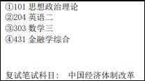 初試科目:政治思想理論+英語二+數(shù)學(xué)三+金融學(xué)綜合