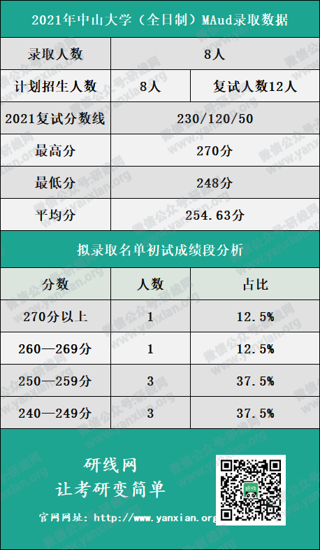 中山大學管理學院2021年MAud計劃招生人數為8人,復試人數12人,擬錄取人數為8人。