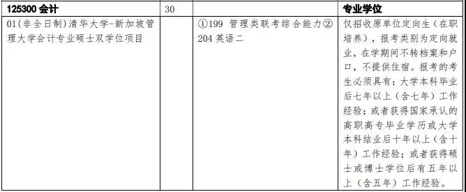 2021年清華大學經濟管理學院會計碩士(清華大學-新加坡管理大學會計專業碩士雙學位項目)計劃招生30人,清華大學深圳國際研究生院會計碩士(高級財務管理與大數據碩士項目)計劃招生30人。