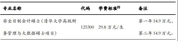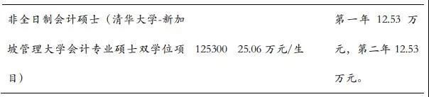 非全日制會計碩士(高級財務管理與大數據碩士項目)學制為2年,學費為29.8萬元/生;非全日制會計碩士(清華大學-新加坡管理大學會計專業碩士雙學位項目)學制為2年,學費為25.06萬元/生。