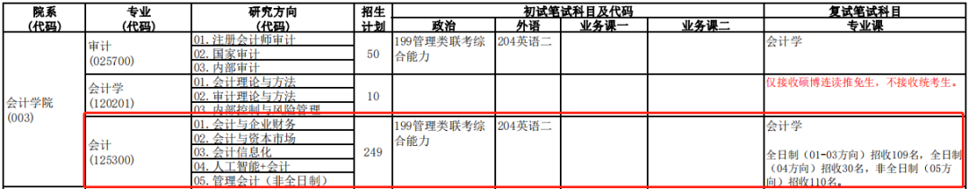 研究方向 01.會計與企業財務 02.會計與資本市場03.會計信息化 04.人工智能+會計 05.管理會計(非全日制)。